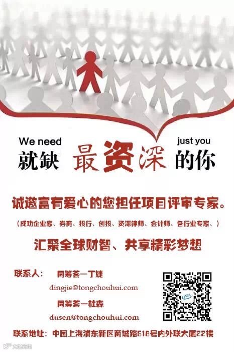 2.将姓名、联系方式和详细资料发送到 dingjie@tongchouhui.com / dusen@tongchouhui.com