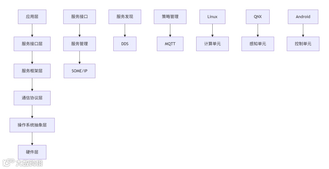 统一通信接口:现代SOA中间件支持多种通信协议,如SOME/IP、DDS、MQTT等,实现了线程、进程、域控制器内异构核以及车云之间服务调用的一致性。