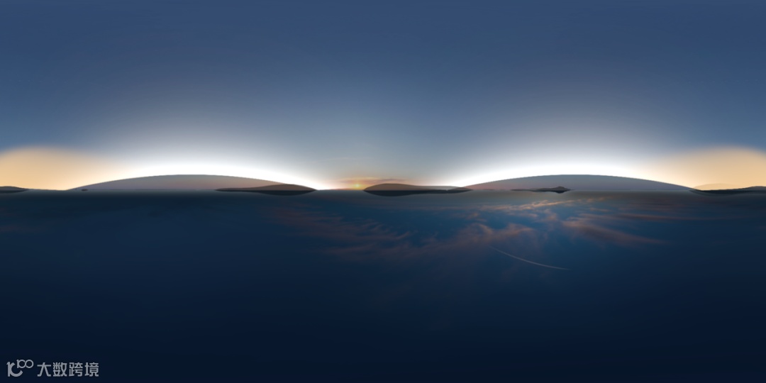 背景模型的使用需要看具体情况来选择,如果旋转的视角限制在很小的角度,或者固定视角,那背景可以使用一个面片填充贴图,用最简单的方式即可满足开发需求。当需要360°旋转甚至俯仰角度的旋转时,就需要一个球形的模型来作为背景支撑。与球形UV相对应的,不管是制作的渐变背景还是天空背景,我们的贴图样式都需要与HDRI的展开方式一致。