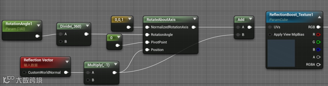 在贴图参数的前面简单链接上几个节点控制HDRI贴图的旋转即可,如图3.2.6。
