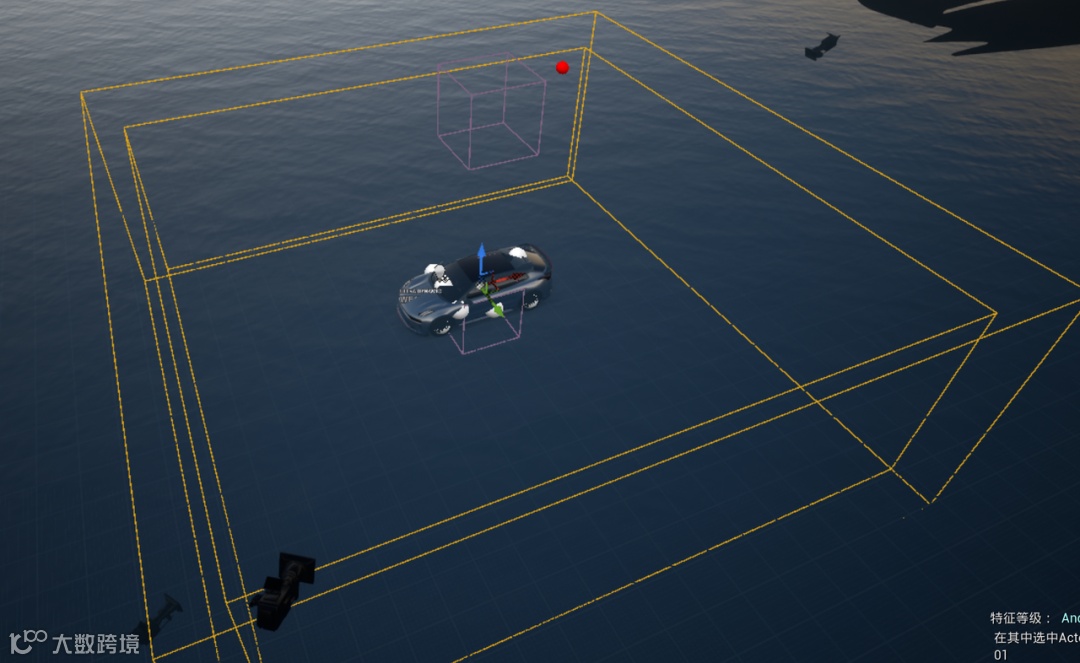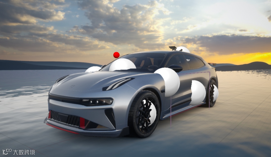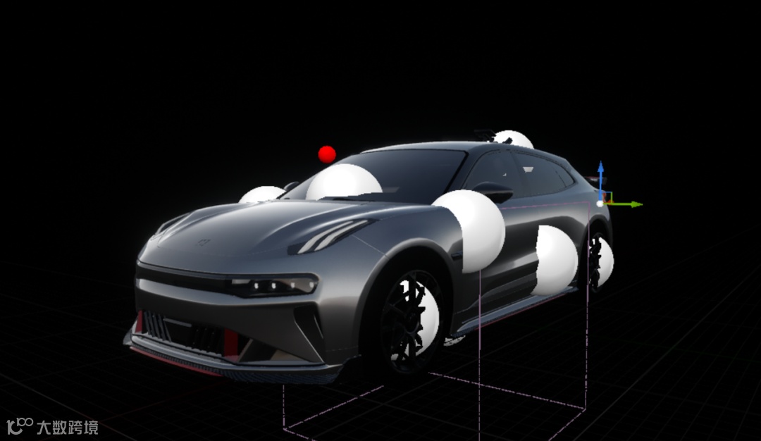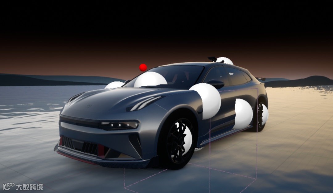 反射捕捉用来提供车身的高光反射。我们将反射捕捉放入场景中,调整大小到比车模稍大两三倍即可。