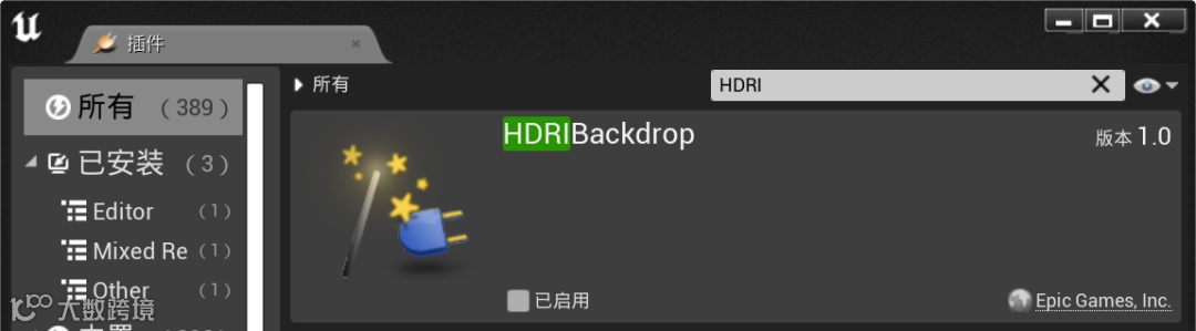 HDRI Backdrop与使用HDRI贴图的skylight类似,但区别在于skylight上的HDRI贴图在环境中不可见。我们可以在设置——插件里面找到HDRI Backdrop,勾选启用并重启Unreal 引擎。