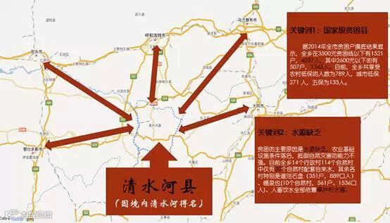清水河县,是一个国家级贫困县,这个因境内清水河而得名的地方,却饱受严重缺水而带来的困难和落后,而造成这里贫困的根本原因就是缺水。全县有95%的乡镇人畜饮水困难,窑沟乡是其中缺水最为严重的乡镇之一。当地人畜饮水主要依靠旱井和水窖,由于缺水,每天全家人的一盆洗脸水,要洗脸、擦地,还要用来饮牲畜。在那里,水要比油珍贵得多。