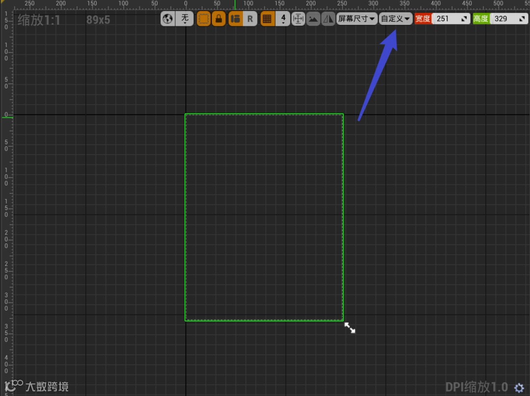 右上角将尺寸修改为自定义尺寸,将UI设计对应的宽度与高度输入进去,定义好悬浮卡片的尺寸大小,如图2.4.2。