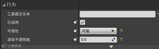 渲染不透明度:对按钮的不透明度进行数值上的精准控制,可以通过节点来控制按钮的不透明度,但更多的是在UMG动画中制作按钮不透明度的渐变,以实现按钮渐隐和渐显的过程。