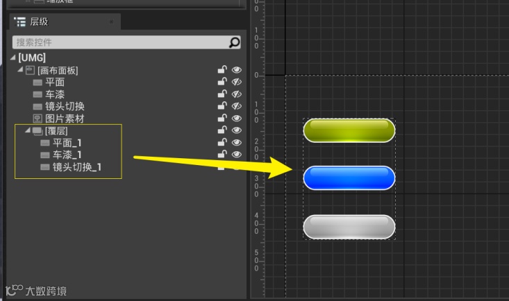 实践举例4:新建一个用户控件,拖入一个覆层或者包裹框等面板控件。在画面的