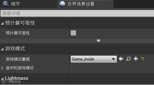 并在世界场景设置里找到游戏模式重载,选择我们创建的Game_mode。