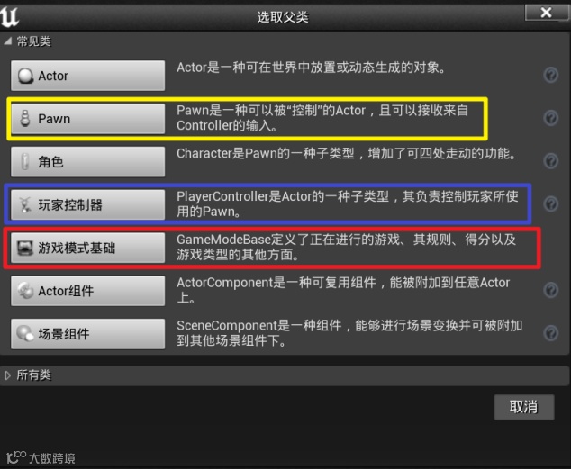 PlayerController:控制pawn实现功能。