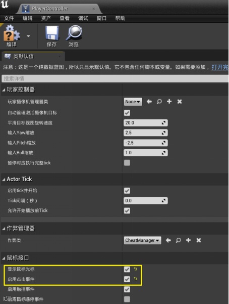 PlayerController:打开PlayerController 后,将鼠标接口里的显示鼠标光标和启用点击事件都勾选上。