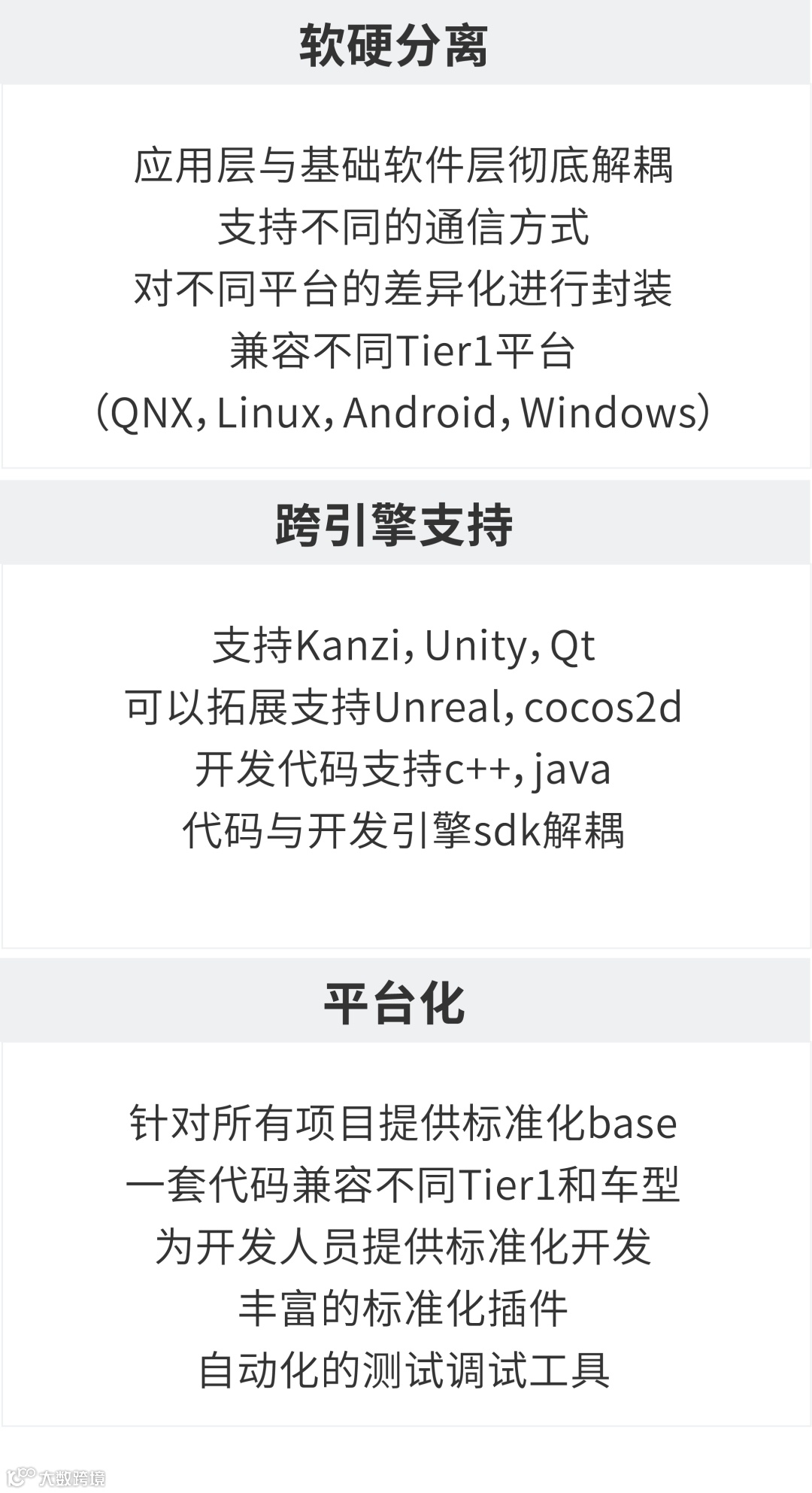 随着智能汽车的快速发展,座舱技术也在不断地迭代升级,多通道融合交互、平台化、集成化已成为智能座舱的发展趋势。怿星科技针对智能座舱软件平台化开发需求,推出的eFramework产品可以帮助客户快速建立座舱HMI软件平台化能力,提升座舱软件的复用率和研发质量。