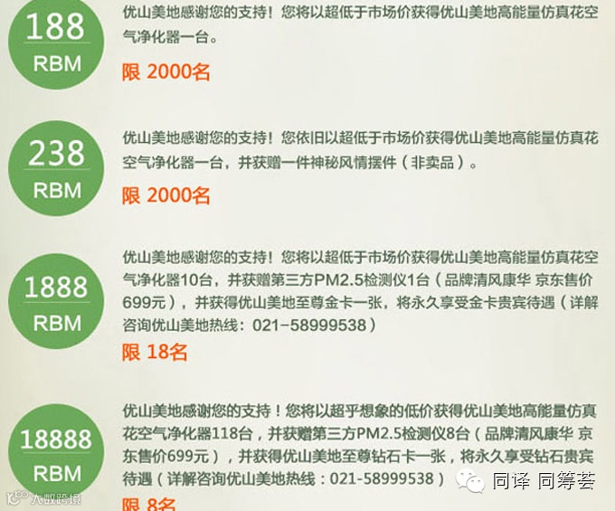 认投18888元,优山美地感谢您的支持!您将以超低于市场价获得优山美地高能量仿真花空气净化器118台,并获赠第三方PM2.5检测仪8台(品牌清风康华,市价699元), 并获得优山美地至尊钻石卡一张,将永久享受钻石卡贵宾待遇。(详解咨询优山美地热线:021-58999538)