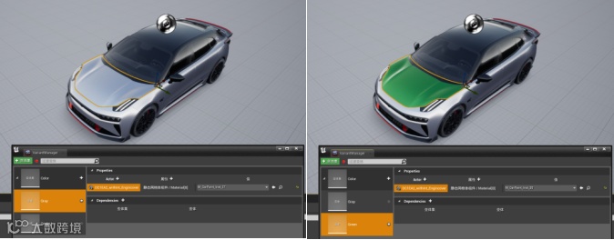 将关卡变体集放入场景中,如此便完成了对车漆切换的功能。