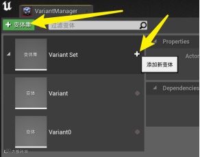 双击打开变体集,点击添加一个变体集,在变体集下新增两个变体。变体集与变体我们都可以理解为是一个独立的分组。它们之间并不会相互影响。