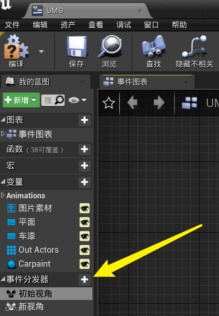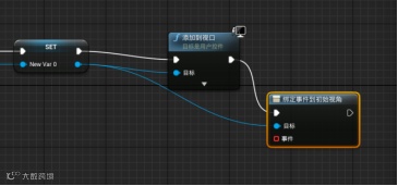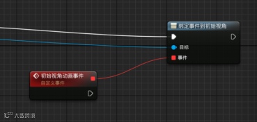 接下来我们添加一个自定义事件更改名字为“初始视角动画事件”,将其连接到“绑定事件到初始视角”节点。这里的作用是把这个事件发生的具体事情引用出来,用新建的自定义事件去编写,方便控制和管理。