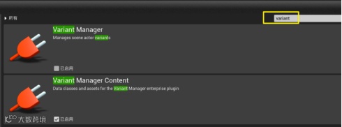 在插件中搜索Variant,并勾选启用Variant Manager 和Variant Manager Content。然后重启UE以激活插件。