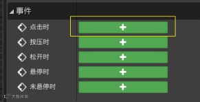 选择按钮,在右侧细节面板找到事件,选择点击时右侧的按钮,如图1.1.1,视图会直接跳转到事件图表的界面去,此时按钮点击时已成为一个信号的输入端口。我们可以通过触发点击时的端口开启用一系列的交互。
