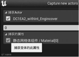 我们需要将引擎盖的Actor添加到变体中去,将Actor直接拖入变体时会弹出属性弹窗,我们搜索需要切换的材质元素0属性,勾选选项将其添加到变体中。