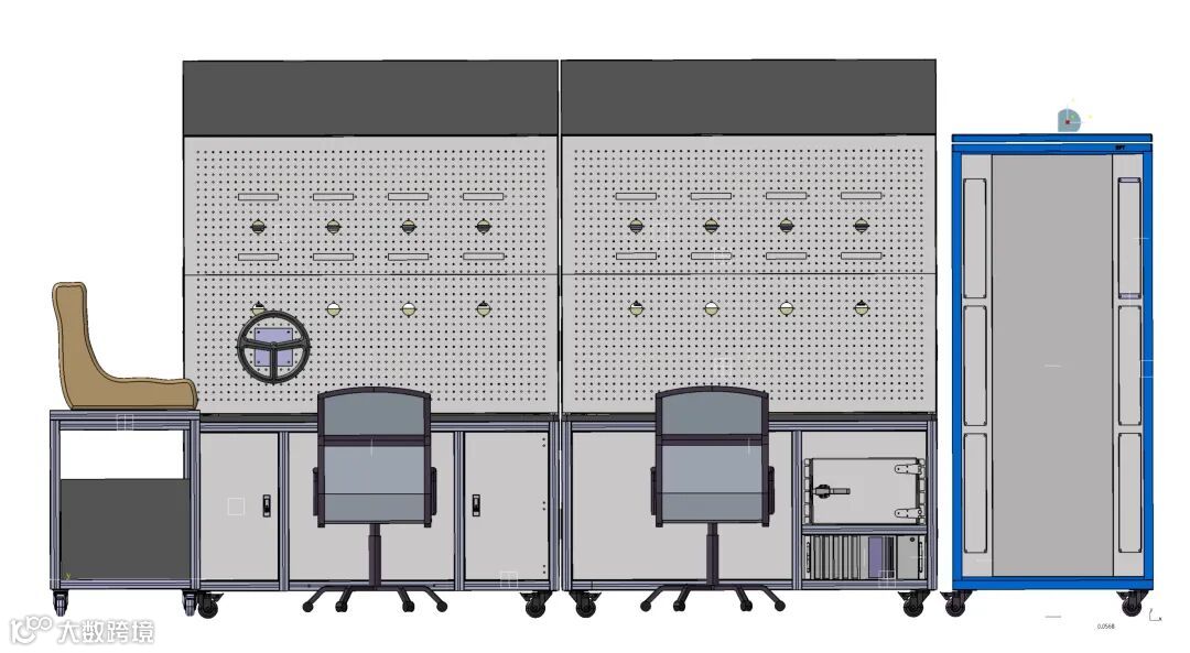 通过线束将机柜内设备与左侧桌面DUT接插件连接,车身域台架测试环境搭建完成。