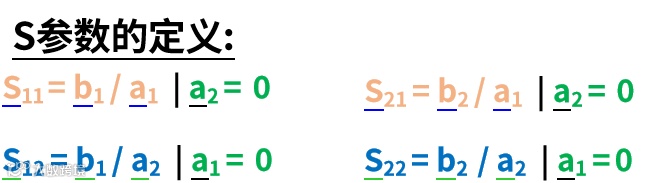 ▶ S参数定义与入射与反射波参量(a,b)比值相关。在进行S参数测量时,入射与反射波参量应在同一频率下测量得到。