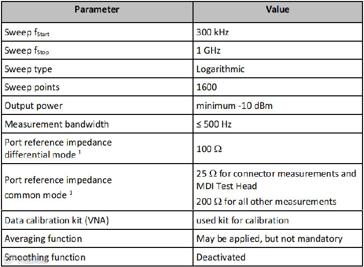 在50 ps的上升时间内,测试夹具的阻抗应在100Ω±5%范围内。如果超过5%的限制不超过120 ps往返时间或60 ps传播时间,则允许±10%的阻抗公差(TDR测试)