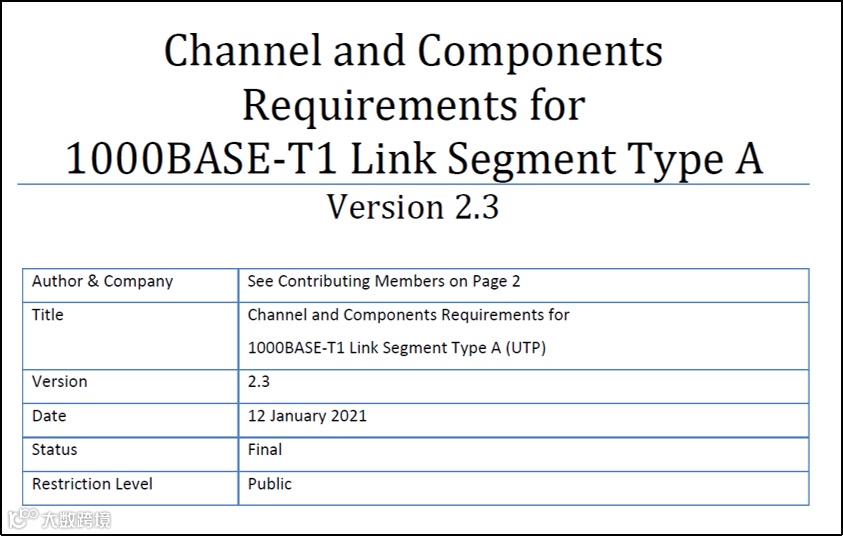本文主要以Channel and Components Requirements for 1000BASE-T1 Link Segment Type A(UTP)测试规范为例,对测试信道、参数指标以及测试方案进行介绍。