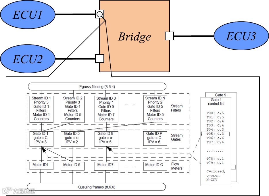 而TSN作为车载以太网数据链路层的扩展,需要对第2层进行保护,因此需要考虑流过滤和监管(这取决于如何使用不同的检测参数,如MAC地址、VLAN ID等),Qci协议就很好的解决了这个问题。