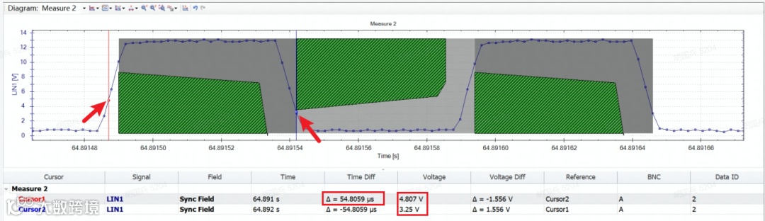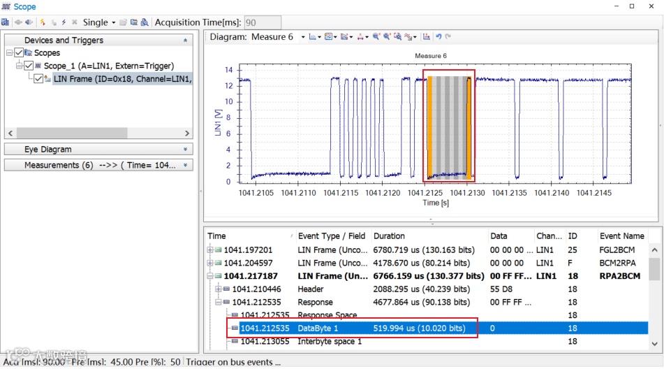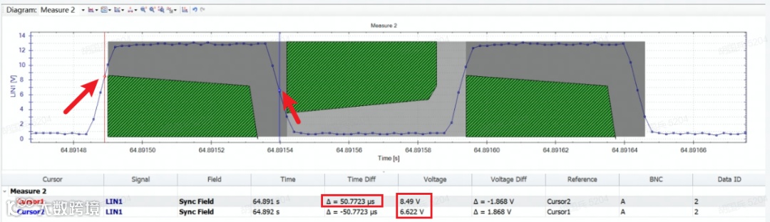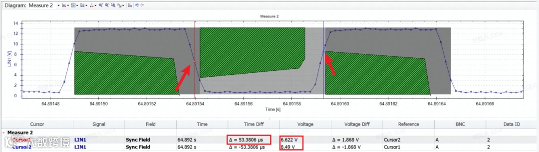 ■ Step2:调用示波器捕捉DUT发送的LIN帧,测量并计算隐性电平最小占空比: