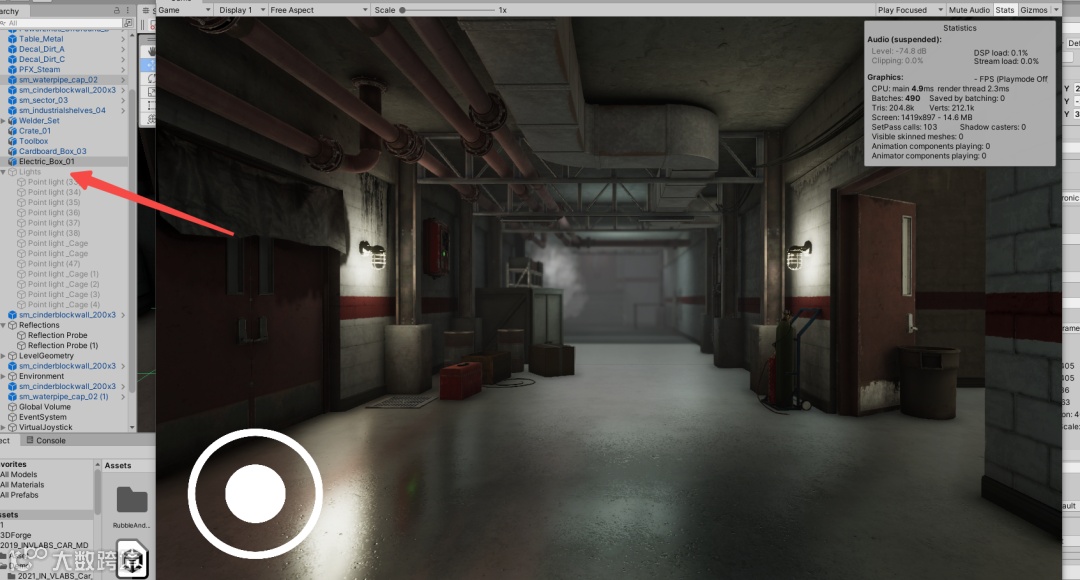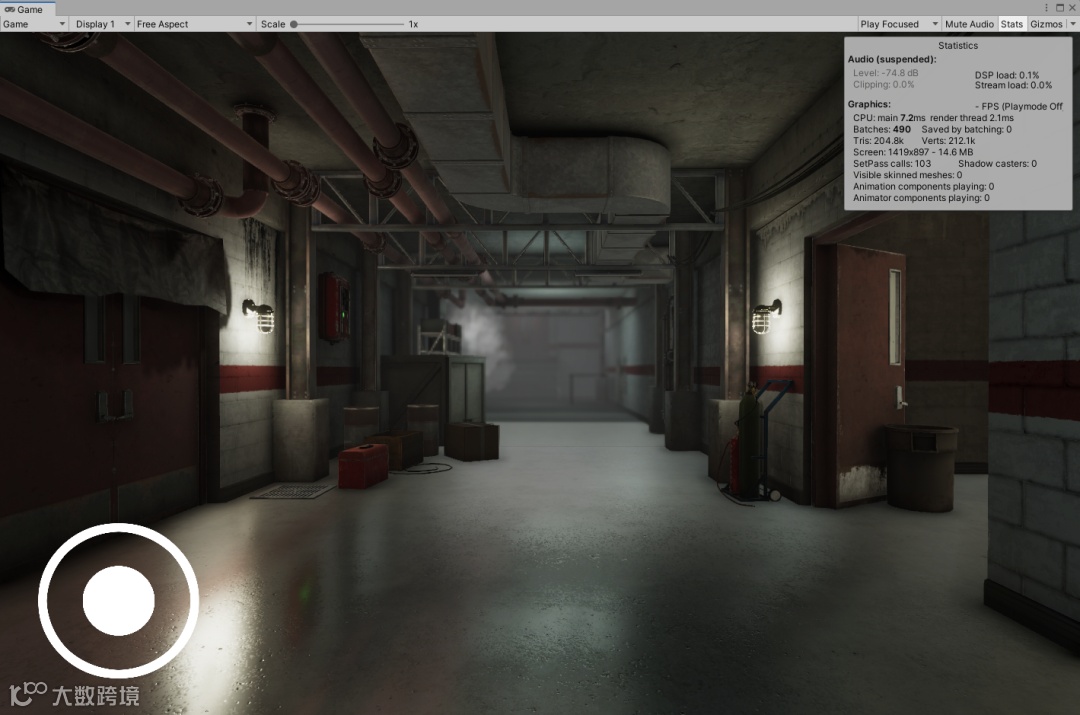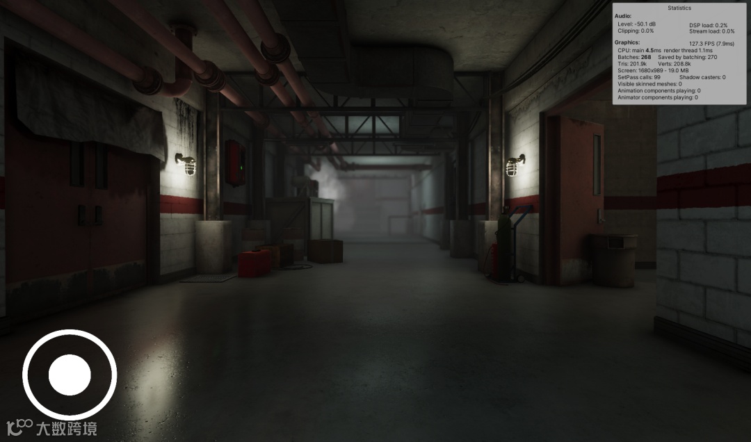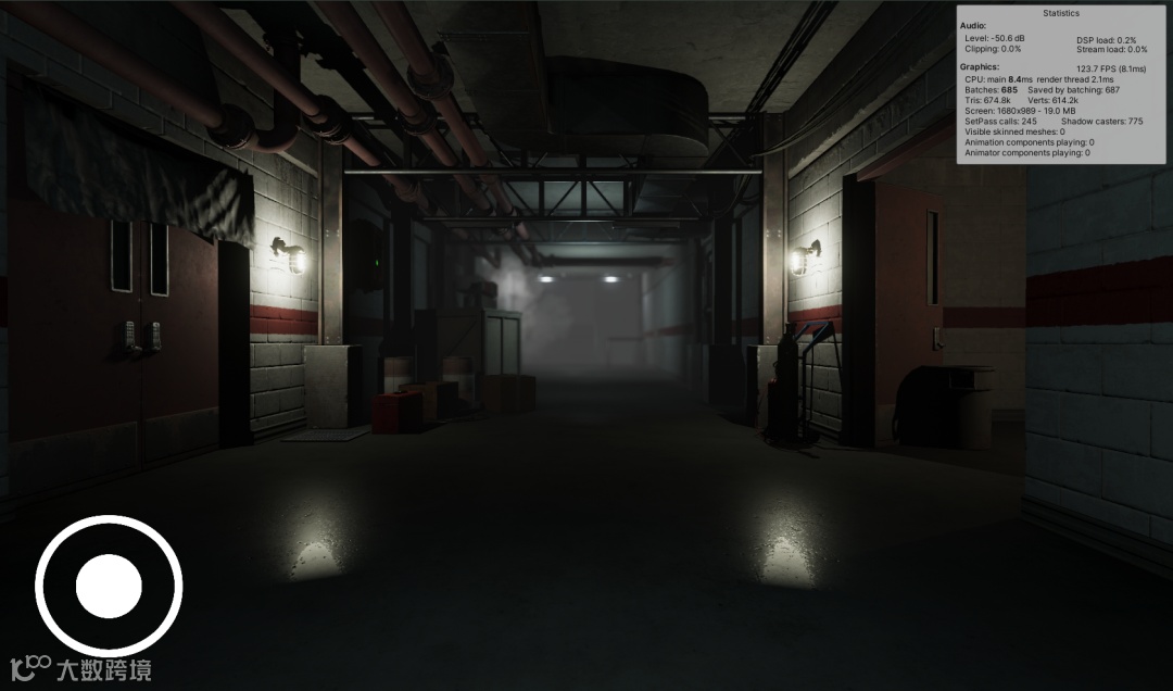我们举个例子(左下角圆圈圈是操作角色移动用的手柄,该场景可以漫游):