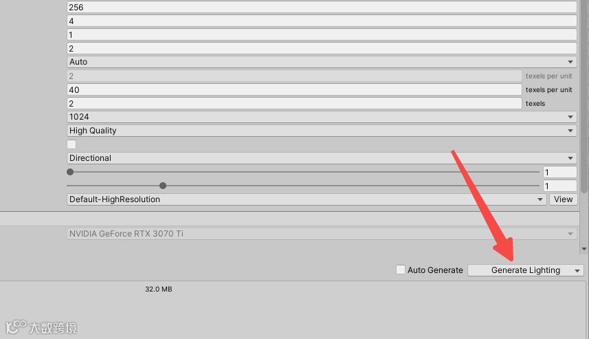 目前对这个独立的场景,我们将针对灯光进行优化。也就是我们将会把灯光信息,烘培到灯光贴图里。这个操作可以直接在unity里完成。
