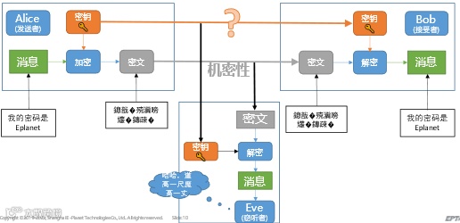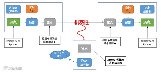 虽然通过密钥对消息进行加密实现了机密性,但同时也引入了另一威胁,即进行加密用的密钥该如何传递给对方呢?如果加密消息用的密钥是使用原文来传输的,那如果该密钥被窃听了,黑客直接使用该密钥对密文进行解密,还是可以得到原消息,机密性也就无从谈起。
