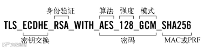 以上内容你学会(废)了吗?那让我们再上点对抗哈。让我们看一个TLS中最常使用的密码套件(Cipher Suite):