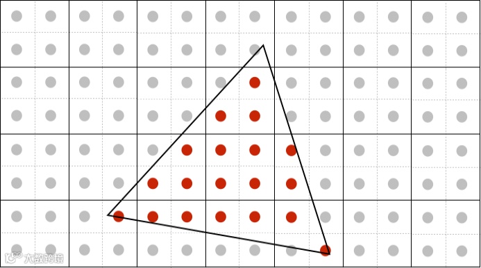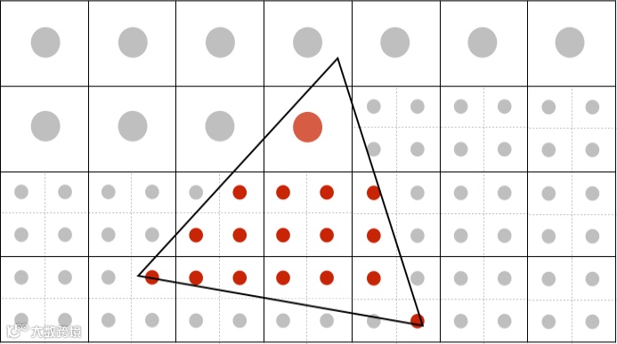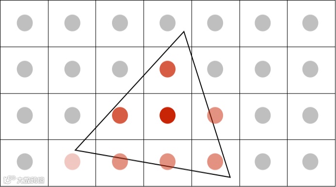 MSAA的原理很简单,在每一个像素内进行多重采样并判断采样点是否在三角形内,然后对判断的结果进行平均,从而得到了改像素的颜色。