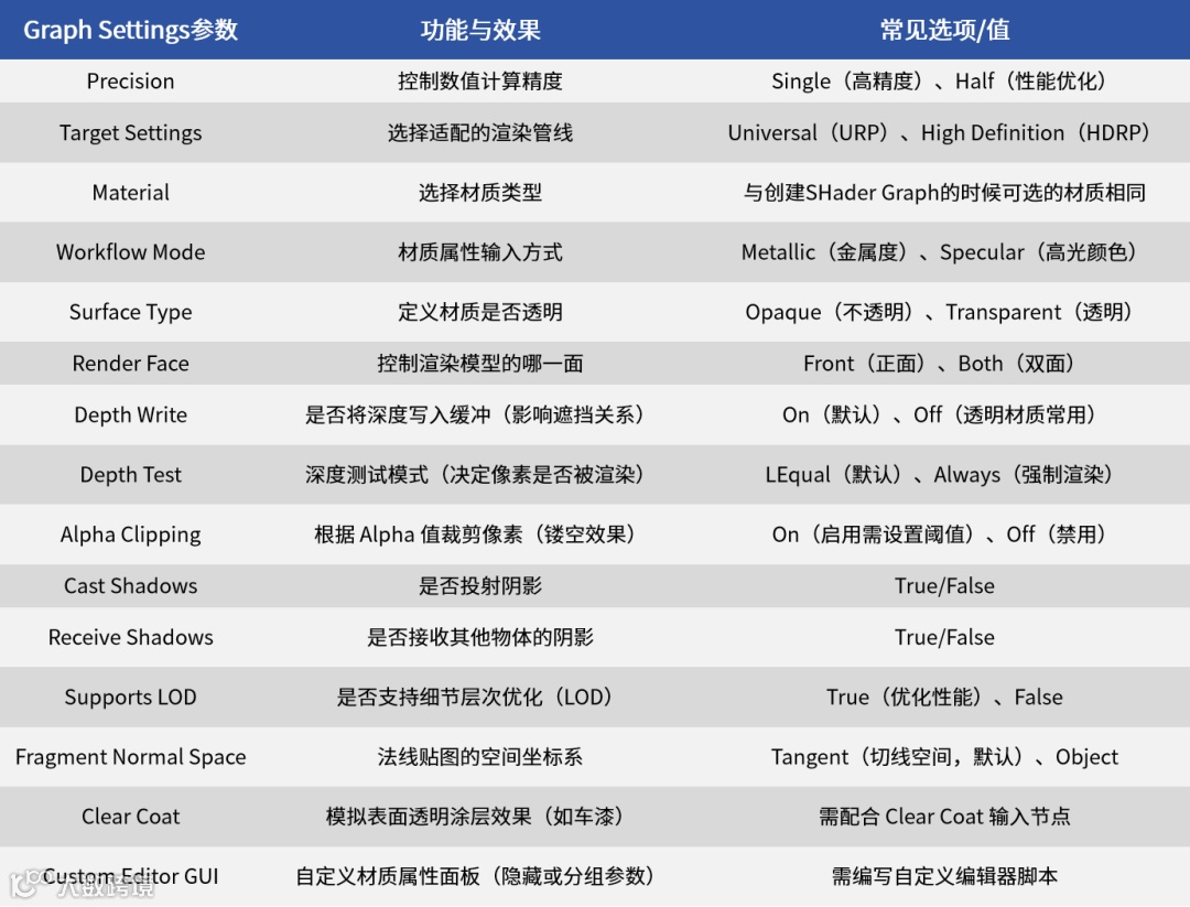 Unlit Shader Graph没有光照模型,需要额外编写光照计算流程。一般用来制作不依赖于固定的光照模型,可以根据需要进行更定制化的处理。