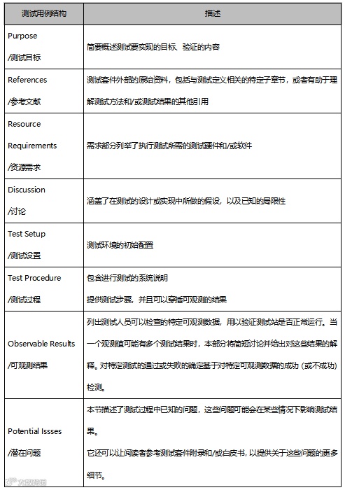 测试用例的基本结构如下表: