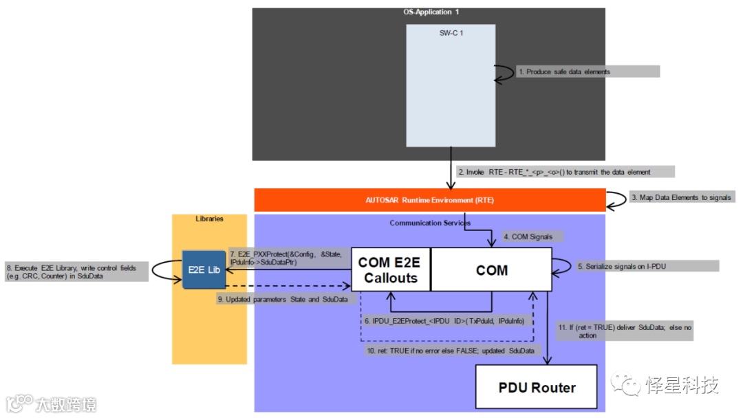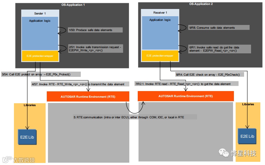 E2E Library的调用主要由E2E Transformer、E2E Protection Wrapper和COM Callout这三种E2E模块来实现。