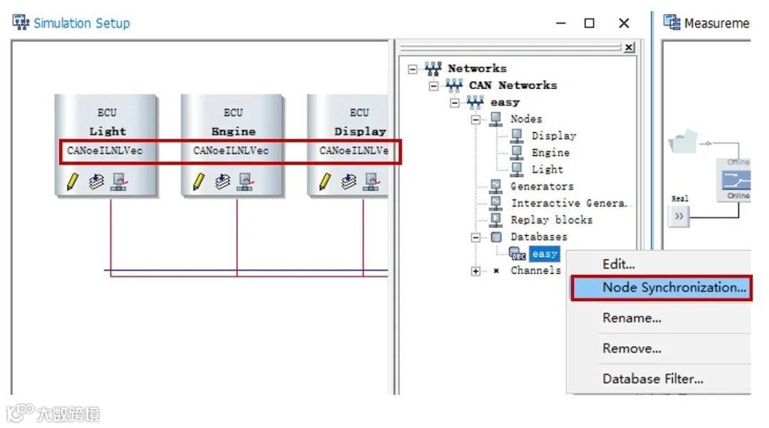 A1:在dbc属性中关联,并选择节点同步;