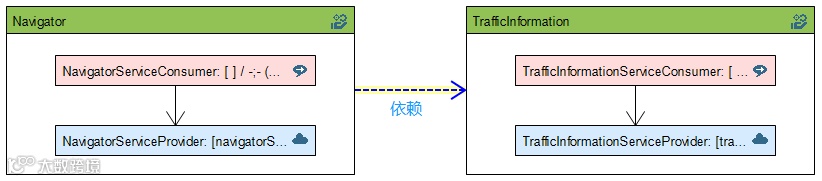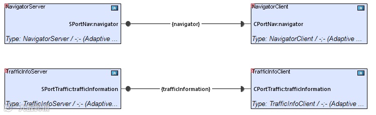 前面定义了两个服务Navigator以及TrafficInformation,对应的Adaptive软件架构设计的如下图所示: