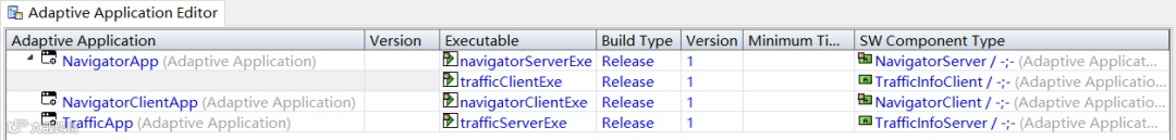 Adaptive application有两种类型:Application level和Platform Level。在本示例中定义的Adaptive application都是Application level。