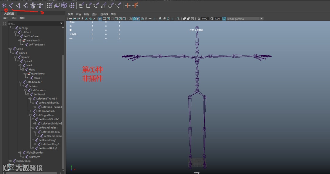 在创建好骨骼之后,需要将骨骼命好名,以便后续刷权重和蒙皮做区分。一般的命名规则都是以关节的部位名称加上编号做区分,如spine_01(脊椎第一部分)、head(头部)。当有左右之分时,使用前缀进行处理,如L_upArm(左上臂)。