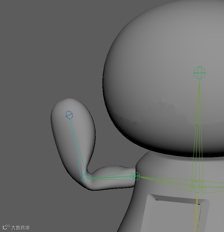 制作好手臂和脊椎的骨骼之后,需要将手臂的骨骼作为子集放置到第三节脊椎骨骼关节之下,这样才能正确的联动脊椎与骨骼之间的关系。