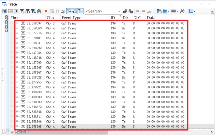CANoe监控报文结果: