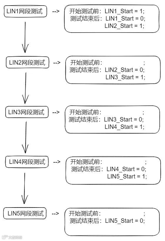 假设现在要测试一个包含5个LIN网段的样件,那么我们在测试的时候就需要将同样的测试规范,同样的测试步骤重复5遍。如果每次对一个LIN主节点的测试需要2个小时,那么对这个包含5个LIN网段样件的完整测试就需要测试人员在工作时间内每隔2小时进行一次操作,一天的时间浪费掉了。