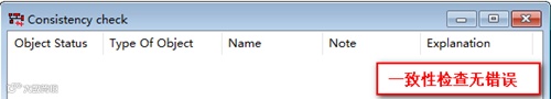 点击File->Consistency Check来执行一致性检查,查看整个数据库的定义是否存在错误,如图17所示。