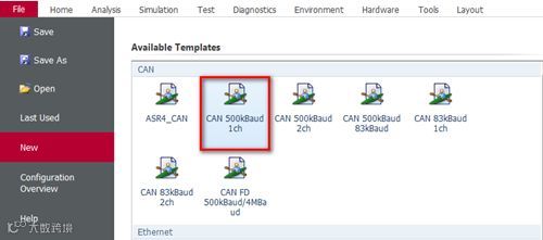 ❏打开Vector CANoe 11.0软件,File->New新建配置模板,命名为CANoeDemo.cfg,并保存,如图6所示。
