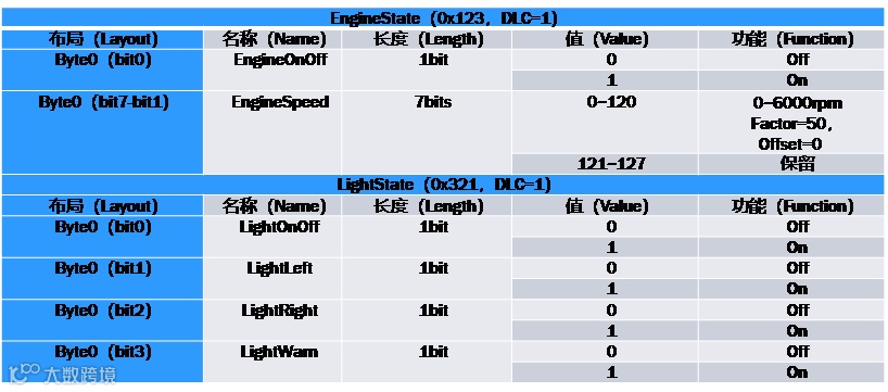 表2 Demo中的报文和信号定义