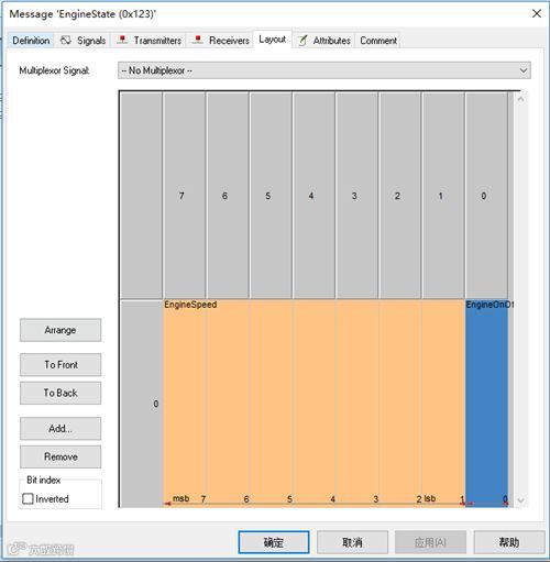 在上方的Layout中,进行EngineState报文中的信号布局,如图11所示。
