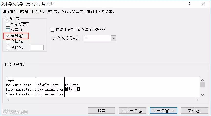 ※ 导入时,弹出的对话框中,选择“逗号”作为分隔符