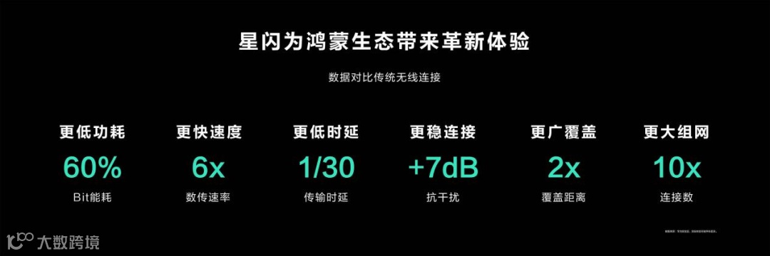 而本次 HDC 大会上,华为终端 CEO 余承东正式宣布了鸿蒙系统和星闪技术的合作,他表示,星闪技术也将为鸿蒙生态带来六个方面的革新体验,分别是更低的能耗,更快的数据传输,更低的传输时延,更稳定、可靠的无线连接,更广的信号覆盖,以及更大的组网规模。