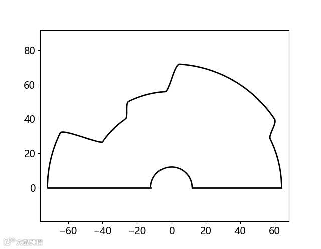 上述代码可以计算出一段给定弧度为sweepangle且半径为1的圆弧,圆弧的圆心为原点,圆弧关于x轴对称;不同起始角度、不同圆心、不同边长的弧线可以通过旋转平移缩放的方式获得。