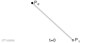 • 一阶贝塞尔曲线:只是起点 P0 与终点 P1 之间的线性插值,没有任何控制点,如下图所示: